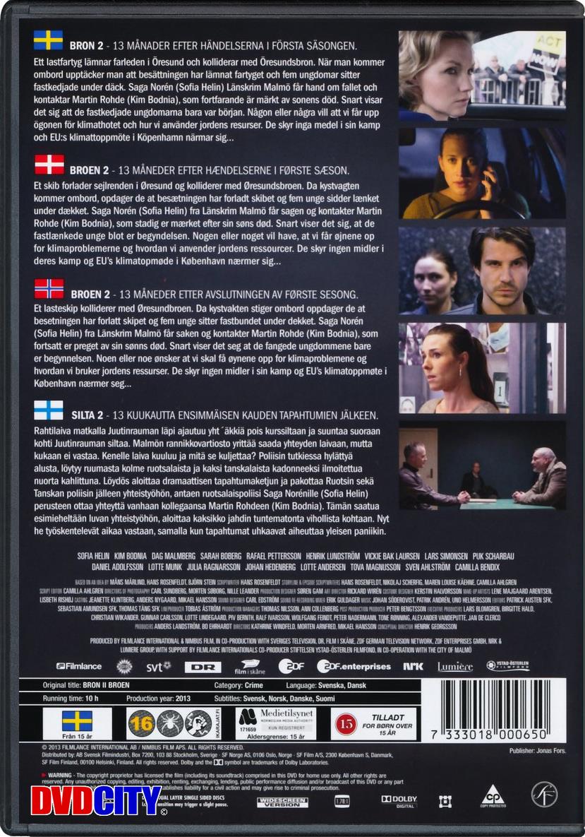 | Beskrivelse: [ Dansk Engelsk ] Saga og Martin undersøger mordet på miljøaktivisterne. Saga indser, at der må være en bagmand, som stadig er i live og tidligere har styret gruppen. De sporer bagmanden til et IT firma i København, men da de dukker op, er han gået under jorden. (Serien er uegnet for børn). Medvirkende: Sofia Helin, Kim Bodnia, Dag Malmberg, Sarah Boberg, Rafael Pettersson, Henrik Lundström, Vickie Bak Laursen, Lars Simonsen, Lotte Munk, Lotte Andersen m.fl. Hovedforfatter: Hans Rosenfeldt Episodeforfatter: Nikolaj Scherfig Konceptuerende instruktør: Henrik Georgsson Fotograf: Carl Sundberg Production design: Søren Gam Musik: Johan Söderqvist, Patrik Andrén, Uno Helmersson Stills: Caroline Romare Produktion: Filmlance International og Nimbus Film i co-production med bl.a. DR og SVT. Beskrivelse: [ Dansk Engelsk ] The second series of the Scandinavian crime drama following the joint efforts of Danish and Swedish police officers to solve murders that take place along the border of the two countries. In this series, 13 months since they last worked together, Swedish detective Saga Norén (Sofia Helin) and Danish detective Martin Rohde (Kim Bodnia) pair up again when a ship crashes into the Oresund Bridge. The vessel is empty except for five kidnap victims and when they die from pneumonic plague the case turns into a murder investigation. Saga and Martin learn that eco-terrorists are responsible for the incident and soon further attacks occur. Can the duo find the culprits before more victims are taken? Meanwhile, Martin has been trying to adjust to life after suffering the loss of a loved one but some devastating news from his wife motivates him to seek revenge... |