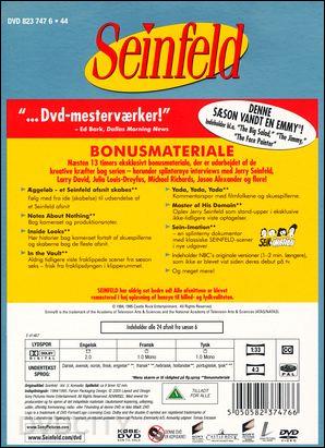 Beskrivelse: [ Dansk Engelsk ] Stand-up comedian Jerry Seinfeld stars in this innovative, half-hour series which blends situation comedy with his own stand-up routines. Seinfeld and writer Larry David have created an intriguing, refreshing view of single adulthood by tapping into the comedian's mind and revealing how real events and problems, such as male friendship, romance, careers and sporting endeavors, find their way into his on-stage comedy act. The series co-stars Tony Award winner Jason Alexander as George -- Jerry's shirt-off-the-back, go the extra-mile, anything for a pal, but please love me, please love me best friend. Saturday Night Live alumni Julia Louise-Dreyfus as Elaine -- Jerry's purely platonic, but still very close ex-girlfriend; and Michael Richards stars as Kramer, Jerry's slightly off-the wall, but not quite over the edge, neighbor, who is as devoted to him as a roadie is to a musician. |