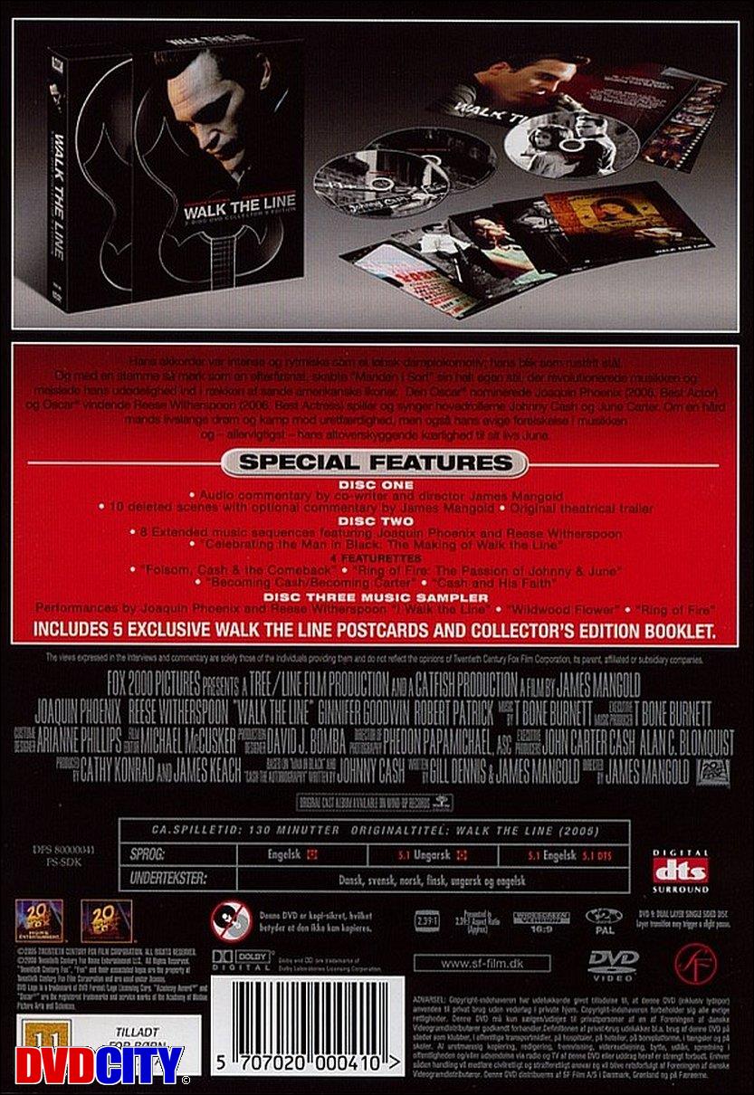 Beskrivelse: [ Dansk Engelsk ] Drama following the life of the legendary 'Man in Black', Johnny Cash. The movie begins in 1955, when a tough, skinny guitar-slinger who called himself J.R. Cash (Joaquin Pheonix) walks into the soon-to-be-famous Sun Studios in Memphis. It was a moment that would have an indelible effect on American culture. With his driving freight-train chords, steel-eyed intensity and a voice as deep and black as night, Cash sang blistering songs of heartache and survival that were gutsy, full of real life and unlike anything heard before. That day kicked off the electrifying early career of Johnny Cash. As he pioneered a fiercely original sound that blazed a trail for rock, country, punk, folk and rap stars to come, Cash began a rough-and-tumble journey of personal transformation. In the most volatile period of his life, he evolved from a self-destructive pop star into the iconic 'Man in Black' - facing down his demons, fighting for the love that would save him time and again, and learning how to walk the razor-thin line between destruction and redemption. Reese Witherspoon won a Best Actress Academy Award for her role as June Carter, Cash's long-suffering wife. | Ekstra features: