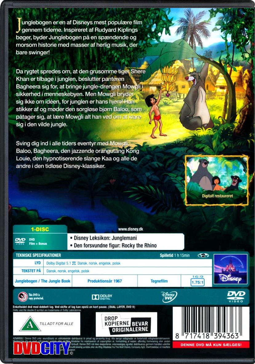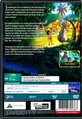 | Beskrivelse: [ Dansk Engelsk ] Vær glad for alt, hvad livet giver og alt hvad du omkring dig ser, glem bekymringer, sorger og besvær. Klap i hænderne, tramp i takt og sving dig ind i Walt Disneys mest elskede klassiker gennem tiderne. Følg menneskebarnet Mowgli på hans eventyr i junglen sammen med panteren Bagheera, den jazzende orangutang Kong Louie og den legesyge bjørn Baloo. Baloo lærer Mowgli om alt det gode i livet og hvad rigtigt venskab betyder. Junglebogen, med den herlige musik og spændende eventyr, er en svingende, gyngende og festlig hyldest til livet. Beskrivelse: [ Dansk Engelsk ] The Jungle Book, based on the adaptation of Rudyard Kipling's classic novel, comes alive in this exciting 40th Anniversary Platinum Edition, brilliantly restored with enhanced picture and sound. Experience the song filled celebration of friendship, fun and adventure that was the last animated film to receive Walt Disney's personal touch. Embark on a thrilling, adventure filled journey with the boy Mowgli as he makes his way to the man-village with Bagheera, the wise panther. Along the way he meets jazzy King Louie, the hypnotic snake Kaa and the lovable, happy-go-lucky bear Baloo, who teaches Mowgli The Bare Necessities of life and the true meaning of friendship. Swing into a jungle of fun in this 2-disc Platinum Edition DVD with all-new bonus features. Meet the long-lost character, Rocky the Rhino, and experience never-before-heard deleted songs, all-new games and much more! |