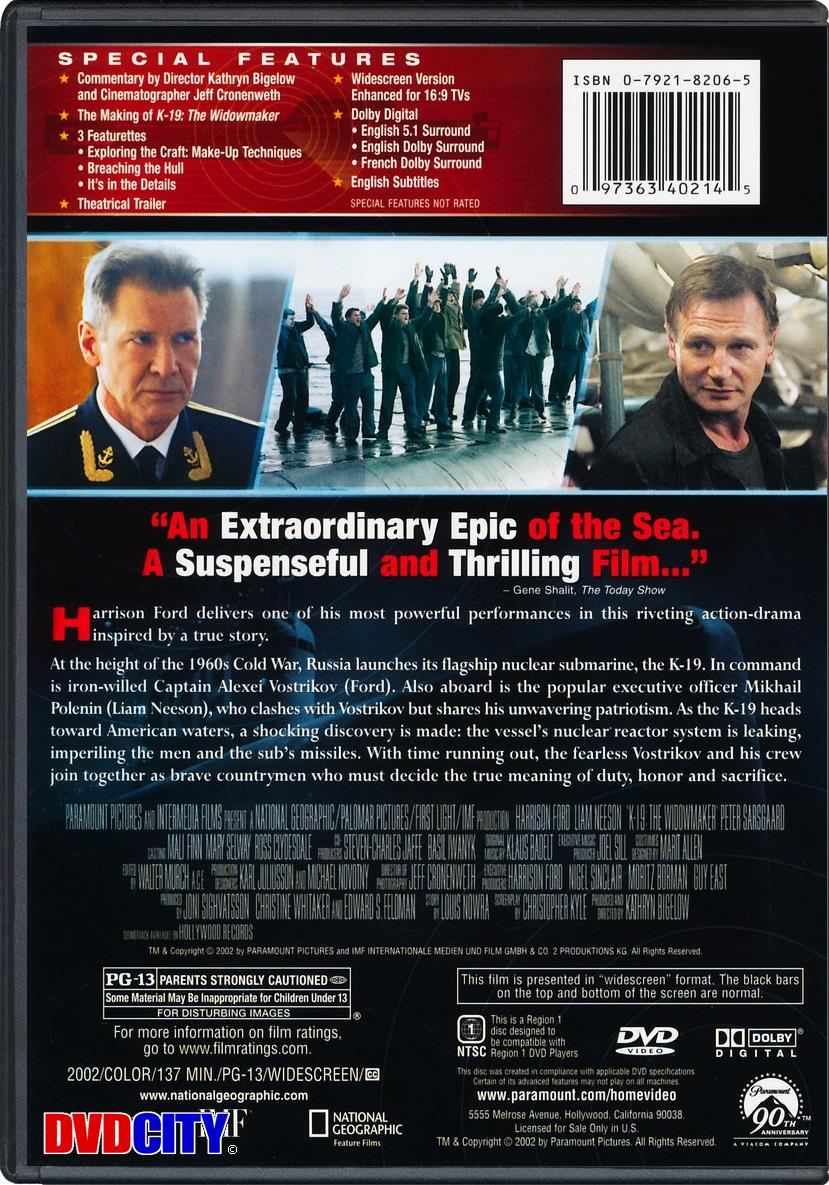 | Beskrivelse: [ Dansk Engelsk ] Baseret på den autentisk hændelse skildrer filmen sammenstødet - og samarbejdet - mellem 2 pligtopfyldende ubådsofficerer i juni - juli 1961 om bord på den sovjetiske atomubåd K-19. Ubåden er plaget af uheld, og på dens jomfrurejser, som samtidig blev dens sidste, truer en læk i dens køleanlæget med at føre til en nedsmeltning i dens ene reaktor - med overhængende fare for en atomudløsning, der med overvejende sandsynlighed vil udløse III Verdenskrig. Men en heltemodig indsats sætter besætningen livet på spil i et kapløb med tiden for at afværge katastrofen. Beskrivelse: [ Dansk Engelsk ] Harrison Ford stars as Captain Alexi Vostrikov, a Russian naval officer who's being given command of the Soviet Union's first nuclear submarine, K-19, at the height of the Cold War in 1961. The vessel's previous commander, Captain Mikhail Polenin (Liam Neeson) has been demoted to executive officer following a botched test and his outspoken assertions that the flagship is not yet ready for deployment, but he curbs his resentment and resolves to serve his new superior well. Polenin's concerns are well founded: parts are not yet installed, equipment is missing, and the ship's doctor is killed in an auto mishap. Political pressure forces Vostrikov to sail his crew into the North Atlantic anyway, for a missile fire test that serves as a warning to the U.S. that its enemy is now its technological equal. The test is a success, but a disastrous leak in the K-19's reactor cooling system soon threatens to create enough heat to detonate the craft's nuclear payload - which would certainly be mistaken for the first salvo in a worldwide atomic exchange and spark the beginning of World War III. With no other option, Vostrikov orders his men to repair the damage in ten-minute shifts, irradiating them hopelessly. The conflict between the seemingly bureaucratic Communist Vostrikov and the more humane Polenin escalates, until a surprising twist reveals where both officers' loyalties truly lie. |